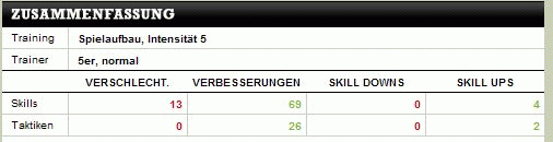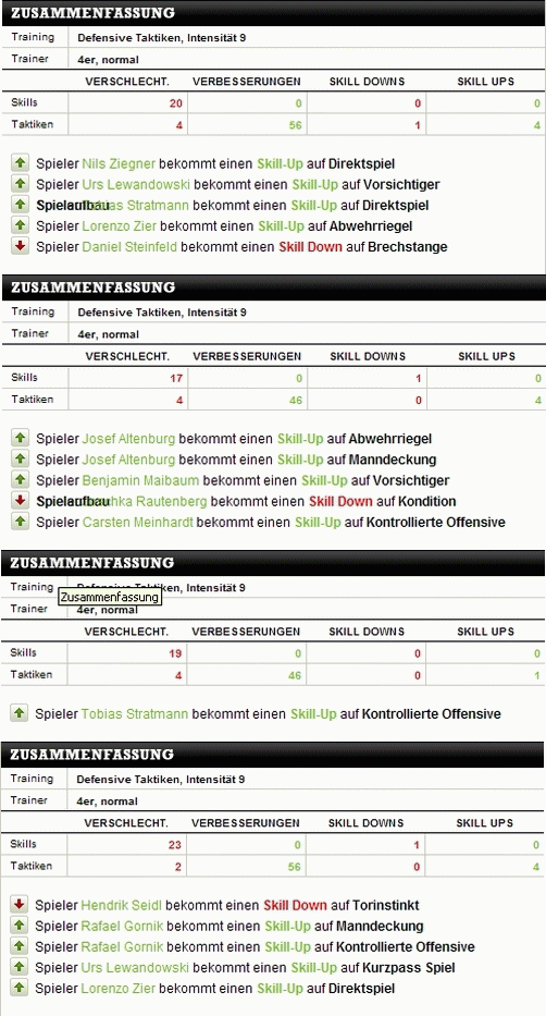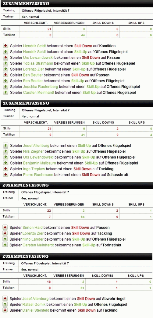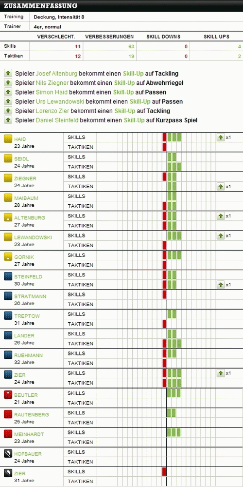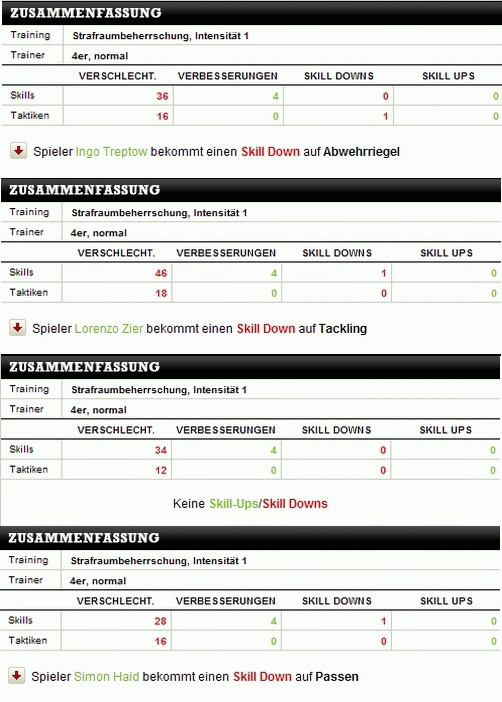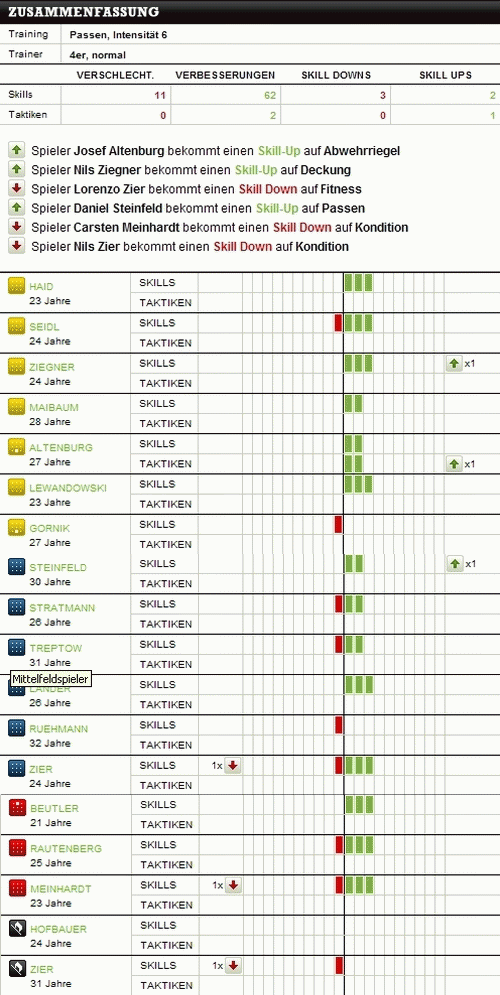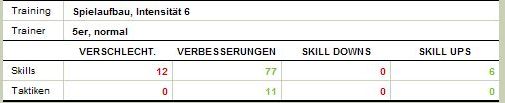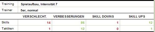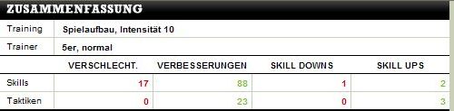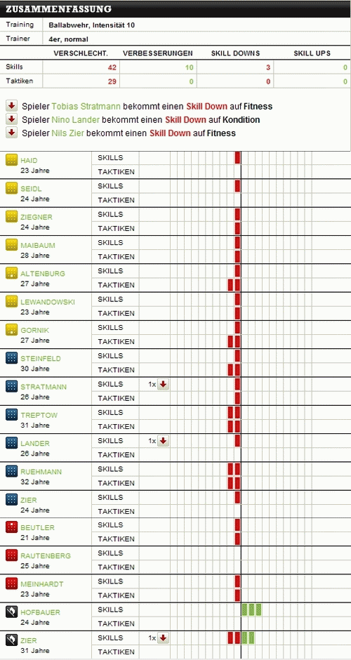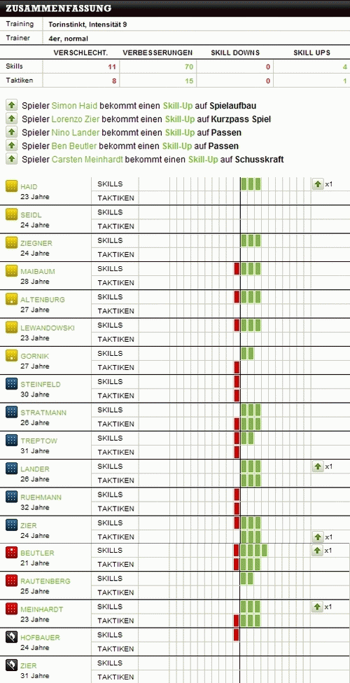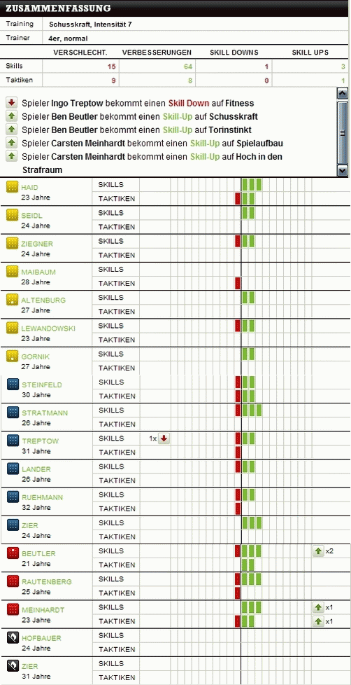 Also ich hab das heutige Training jetzt einmal so überflogen - aber das Kondi Training hängt ordentlich - bei Int. 1 tut sich so gut wie gar nix (alle Verbesserungen < 10 - keine Skill Ups oder Downs) ........bei Int. 3 sind die Skillverschlechterungen fast durchwegs > 10 - die Verbesserungen hingegen fast durchwegs < 10 und erste Skill Downs beginnen .