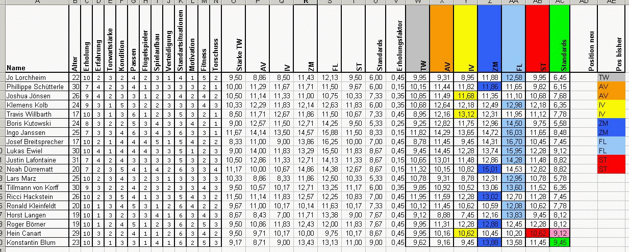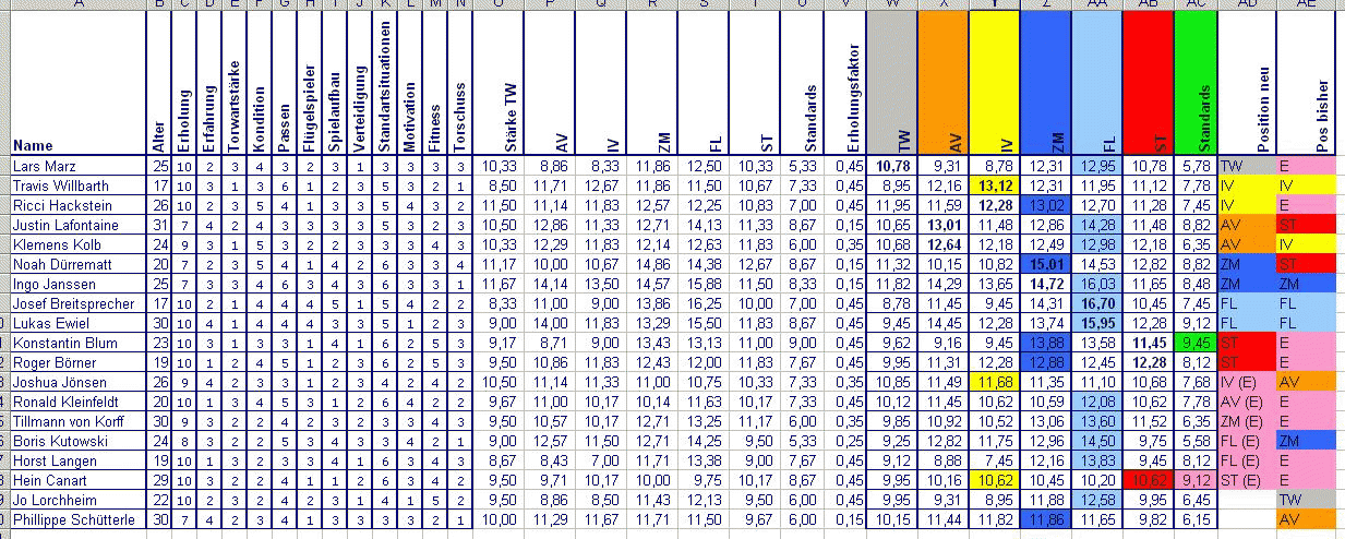 zb. Flügelspieler ist am höchsten, dann wird nur das (zb grün)markiert. Wenn durch Trainigsteigerungen dann eine andere Position "zugeteilt" wird, geht die Farbe in die andere Spalte.